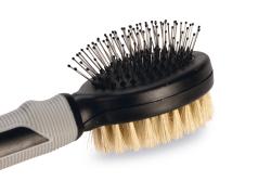 Beeztees Combi Brush çift işlevlidir. İğneleri olan taraf tüyleri gevşetir ve tüyleri çıkarır. Ve fırça tarafı tüylerin yüzeyinden gevşek tüyleri çıkarır. Düzenli tarama, köpeğinizin tüylerinin sağlıklı kalmasını ve iyi bir parlaklık kazanmasını sağlar. Her zaman tüylerin çıkış yönünde fırçalayın. - Yumuşak tutuş - Kısa ila uzun tüylü ceketler için ideal Ölçüler: - Küçük: 21x6x6 cm - Büyük: 22.5x6.5x7.5 cm