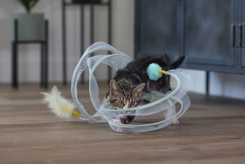 Beeztees Kitten Play Spiral Gabi, bir kedi tüneli ve oyuncak bir arada. Aslında, yavru kediniz içinden geçebilir. Bu tünelde yer alan metal halkalar, spirali açık tutar. Açık tasarım sayesinde, tüylü dostunuz her şeyi sürekli gözlemleyebilir. Dış kısmı parıldayan bir kumaşla kaplıdır ve uçlarında ekstra meydan okuma sağlayan eğlenceli oyun elementleri bulunur. Bir uçta bir tüy, diğer uçta bir oyun topu bulunur. Yavru kediniz bu oyuncakla sonsuza kadar eğlenebilir. Güzel bir ekstra olarak, spiralı kullanmadığınız zaman katlayabilirsiniz. Küçük tüylü dostunuzun bu harika yavru kedi oyuncağı ile keşfetmesine izin verin. - Metal ve kumaştan yapılmıştır - İki oyun elementi içerir - Saklaması kolay Ölçüler 60x25x25 cm